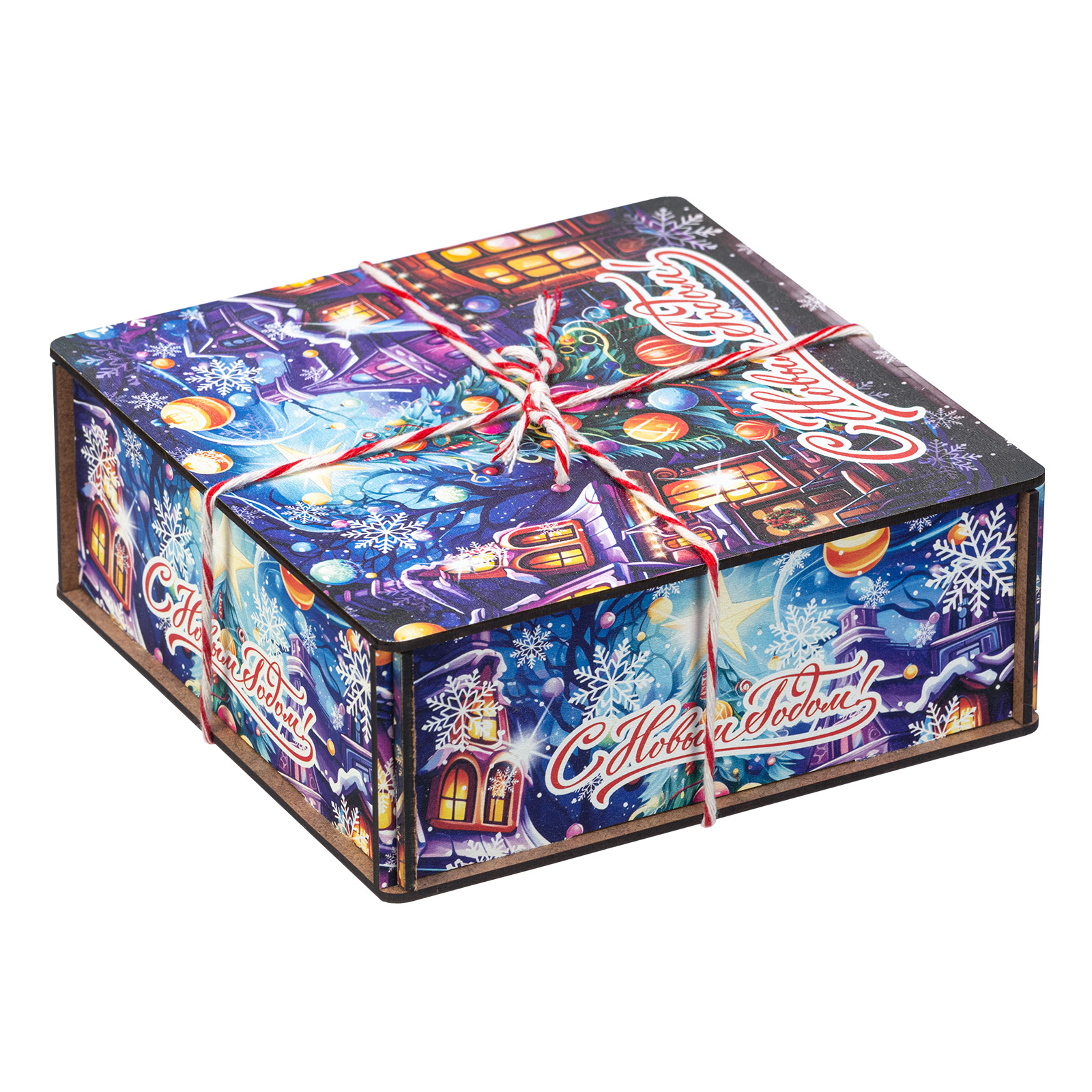 Интересный вариант новогоднего подарка – «Хрустальная сказка (Полезный состав)». Он представлен в разделе Дерево. Отлично подойдет на подарок в 2026 году с символом Лошадь. Внутри такого презента находится кондитерский набор весом 700 граммов.