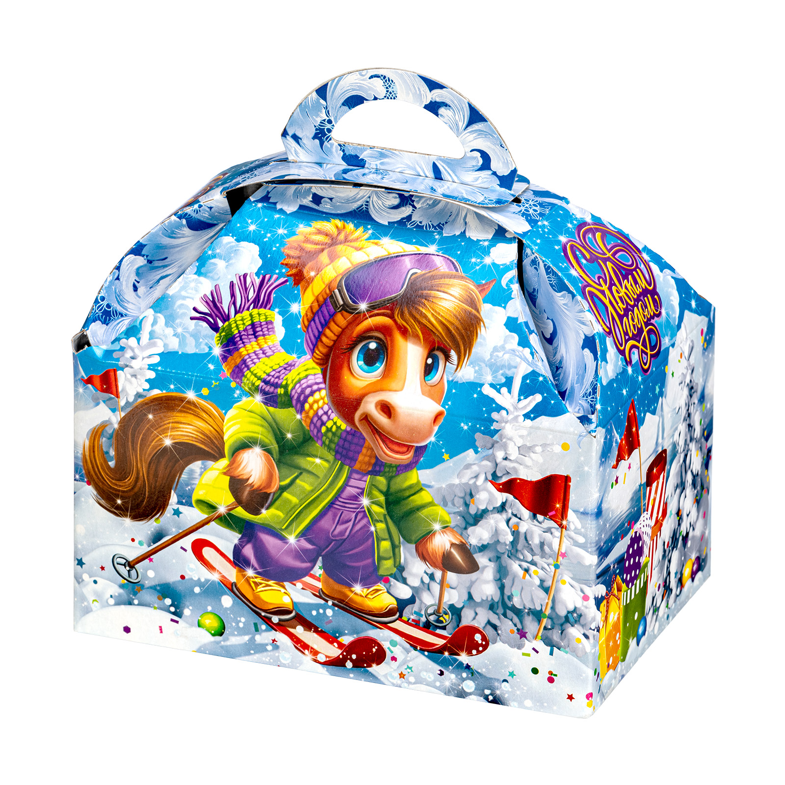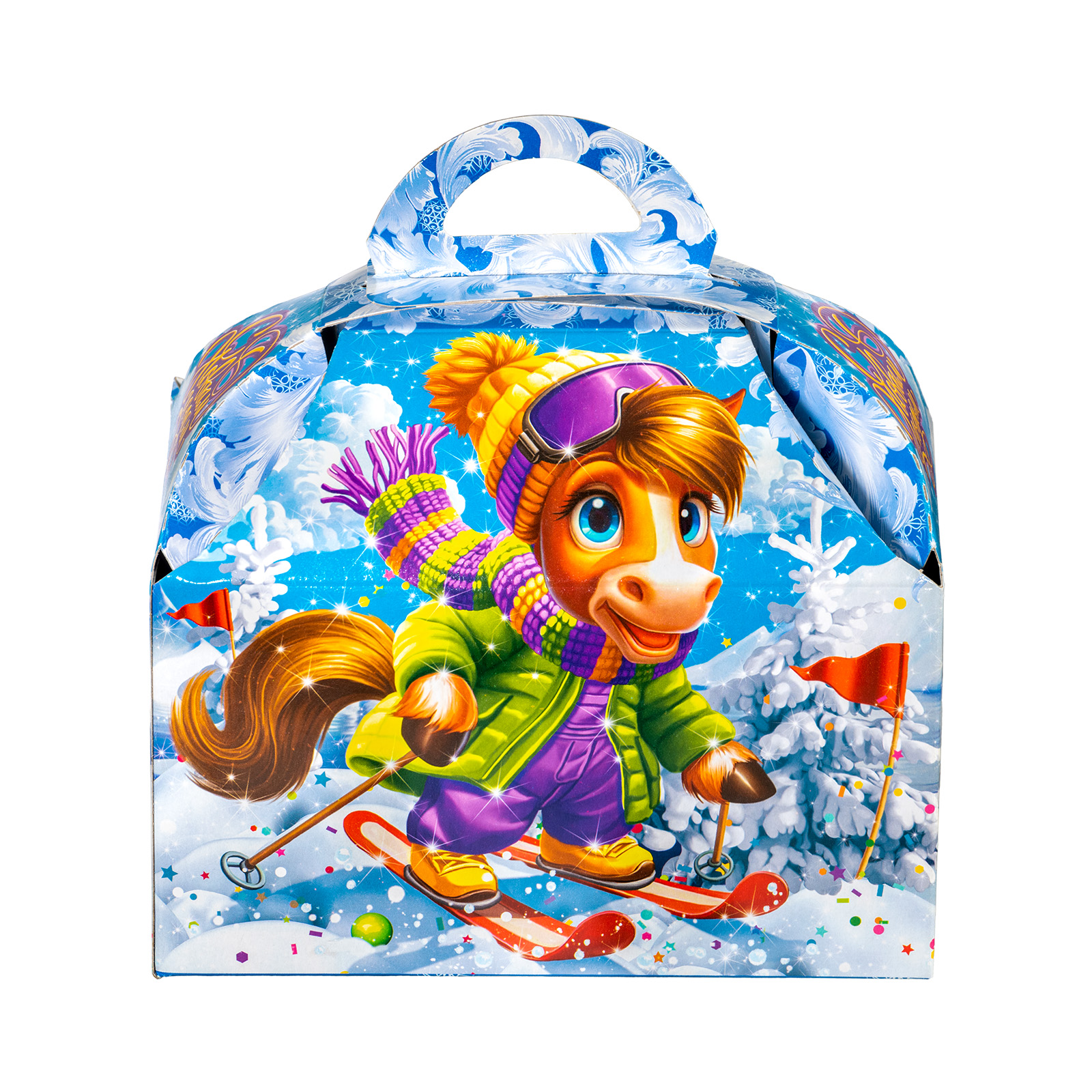 Этот новогодний сладкий подарок в картонной упаковке легко поднимет настроение сластене любого возраста. Тишина уснувшего зимнего леса вдруг резко была нарушена одним веселым лыжником, который с вихрем пронесся по снежным просторам. Судя по выражению его довольной мордочки, заезд прошел замечательно - самое время отогреваться горячим чаем с вкусными сладостями! Присоединяйтесь и вы, ведь сладостей в этом наборе хватит на все новогодние праздники! Кроме того, в состав подарка входит небольшой памятный сувенир, который еще долго будет напоминать о веселых новогодних днях.